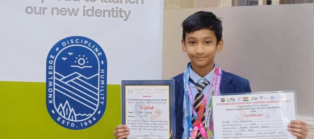 We are elected to share that our student *Viom Maheshwari*won 🌟💫Gold Medal🥇in “3rd Parmali Devi Memorial Taekwondo Championship 2025” organised by P. D. Taekwondo Academy,Greater Noida in Under 10 category on 9th November at RG Modern School, Bilaspur, Noida.